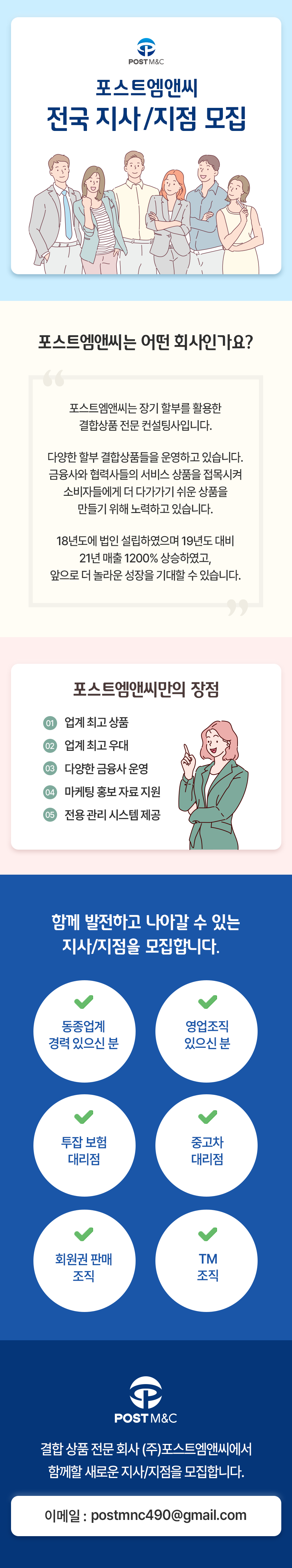 (주)포스트엠앤씨 전국 지사/지점 모집결합 상품 전문 회사 (주)포스트엠앤씨에서